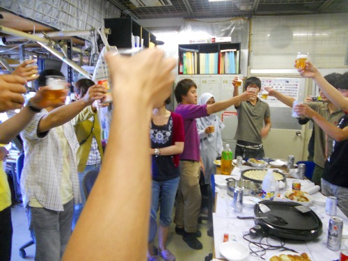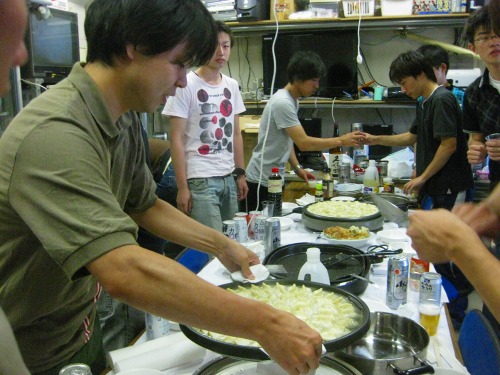 | 2011-6-28 ホワイト餃子パーティー開催 昨年は忙しくて開催できませんでしたが、杉山研恒例の餃子パーティーです。 ![]() 売り切れ必死なので早朝からホワイト餃子に並びます。 ![]() 無事600個購入できました。 ![]() ナフィサ用には肉の入っていない餃子小舎の餃子を用意…。 ![]() 油で揚げるように焼く独特の餃子なのでコントロールが大変です… ![]() 乾杯〜 ![]() 途中でスポーツをしてお腹を空かせながら食べきりました…。 ![]() |