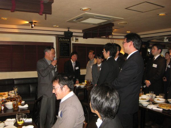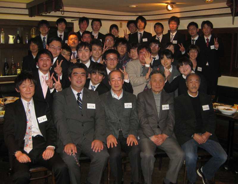 | 2012-01-21 中西・杉山研究室OB会 開催 最近の中西・杉山研究室の卒業生を対象に、2年ぶりのOB会を 柏にて行いました。お忙しいところお越し下さった皆様ありがとうございます。 ![]() 雪がちらつく寒い日でした…。 ![]() 鈴木さんの乾杯の挨拶。 ![]() 久々に旧友が集いました…。 ![]() SnS班OBと現役生…。 ![]() 中西先生が名誉教授になられたのでお祝いしました。 電化製品好きの中西先生にアンドロイドタブレットをプレゼントしました。 ![]() 中野先生のお言葉…。 ![]() 最後に皆さんで記念写真。 皆様の益々のご活躍をお祈りいたします。 |