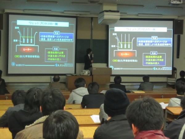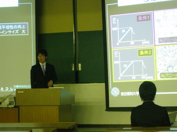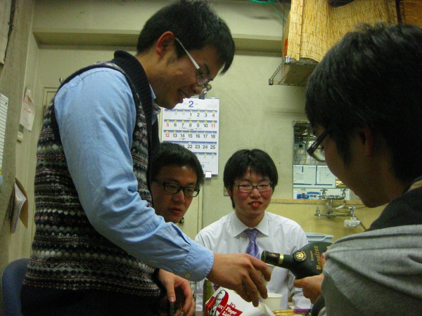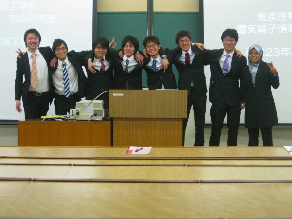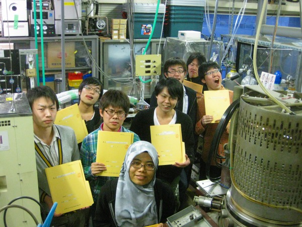 | 2012-02-08 卒業研究発表会 開催 4年生の研究の総まとめとして、卒研発表会が開催されました。 ![]() 前日までに卒業論文も無事書き終わりました…。 ![]() ![]() 多くの皆様にお越し頂きました。この場を借りて感謝申し上げます。 ![]() 発表お疲れさまでした…。 ![]() 修論発表が残っているので、とりあえずは研究室で軽くお疲れさま会。 ![]() 修士の皆さんの協力があっての卒論です…。 |