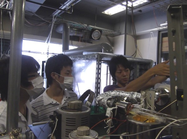 | 2012-8-6〜9 電気工学特別講義 太陽電池作製実験 夏休みに入り、特別講義でプレゼンする太陽電池を試作しながら 太陽電池の仕組みなどを勉強しました。 ![]() ![]() 実際に最先端の研究で使用する装置を使って実験を進めました。 ![]() 完成した太陽電池を加工して、人工的な太陽光を当て発電量を測りました。 ![]() 空き時間にはカナル会館屋上の太陽電池を見学したり、 ![]() 焼き肉パーティーをしたりしました。 ![]() 発表頑張ってください…。 |