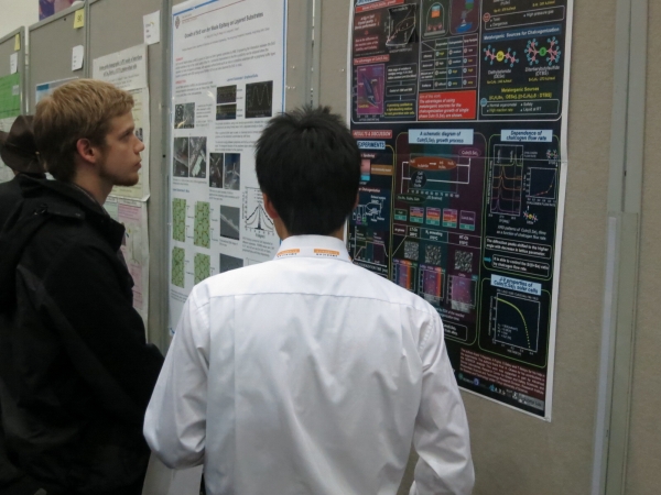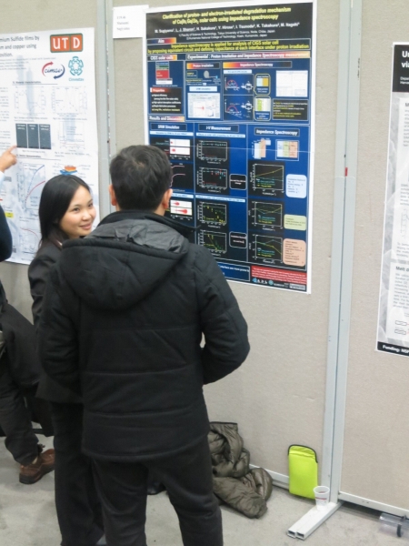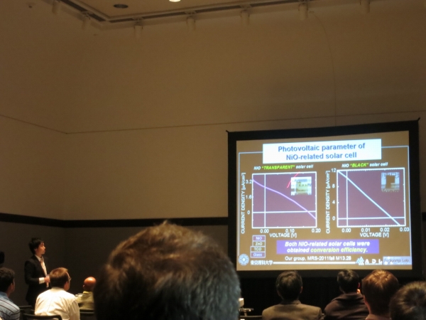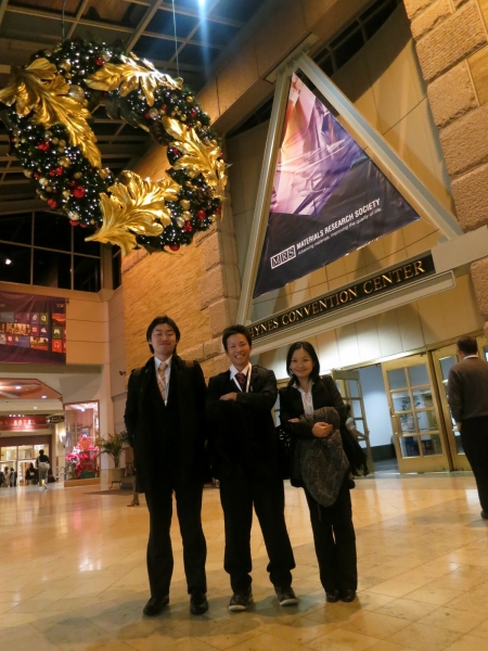 | 2012-11-25〜30 MRS Fall Meeting @ボストン 発表 米国材料学会(MRS)のFall Meeting にて、3件の発表を行いました。 ![]() 会場入り口にて。感謝祭が終わったばかりですが街はすっかりクリスマス。 ![]() 会場入りした山下君…。 ![]() 透明太陽電池に関する口頭発表を行いました。 ![]() 庄司君がCuIn(S,Se)2に関するポスター発表を、 ![]() シャロンがCIGS太陽電池のプロトン照射と インピーダンスに関するポスター発表を行いました。 ![]() ![]() ロブスターやオイスターなど海の幸で舌鼓…。 ![]() |