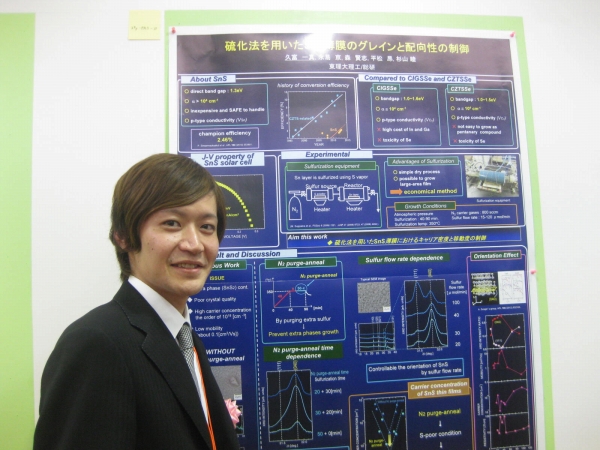 | 2013-3-26〜30 春の応用物理学会発表 年度をしめくくる応用物理学会が、神奈川工科大学で開催され、 杉山研からは2件の口頭発表と2件のポスター発表を行いました。 ![]() 桜と建物が綺麗なキャンパスです。 ![]() ポスター発表は体育館にて。盛況です…・。 ![]() ![]() 発表お疲れさまでした。 ![]() これで2012年度の研究活動は終了です。 休む間もなく2013年度が始まります…。 |