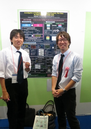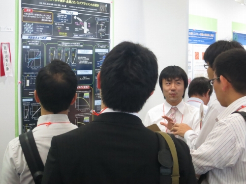 応用物理学会秋期講演会 MRS-JSAP Joint meeting開催 応用物理学会の秋の講演会が、同志社大学で開催されました。 本研究室からは2件の口頭発表と2件のポスター発表を行いました。 また、米国材料学会MRSとのジョイントミーティングが開催され 1件のポスター発表を行いました。 ![]() 皆で記念撮影。 ![]() 口頭発表は撮影禁止なのでポスターの写真しかありません。 ![]() ![]() 佐藤君と永易君のポスター発表。 ![]() 川出君のポスター発表はPoster賞にノミネートされ、 ![]() 審査の結果受賞しました。おめでとうございます。 理科大ニュースのページはこちら。 ![]() いつもお世話になっている他大の先生・学生と飲み会をしたり、 ![]() 夜の京都を散策しました…。 ![]() …。 |