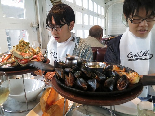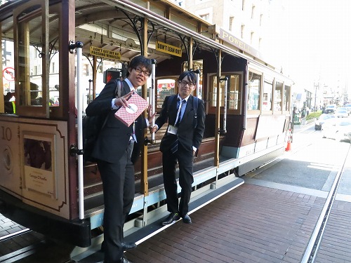 深夜まで多くの方に興味を持っていただきました。ありがとうございます。 ![]() サンフランシスコは港街なので、発表後はカニ・エビ三昧…。 ![]() 名物ケーブルカーにて…。 |