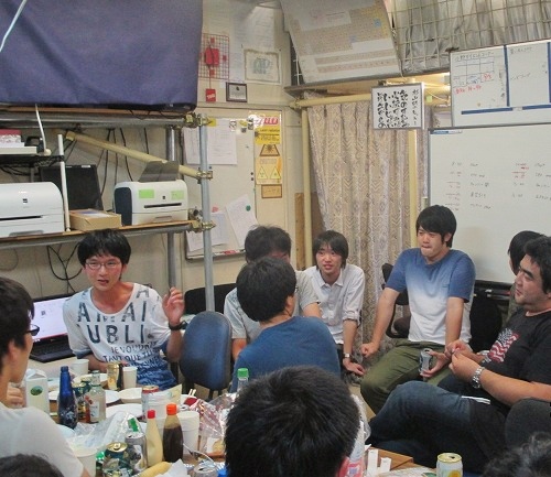 前期のお疲れ様も兼ねて打ち上げも行いました…。 ![]() 9月末のポスター発表頑張ってください。 ![]() 普段来ている1年生みなさんも半年お疲れ様でした…。 |