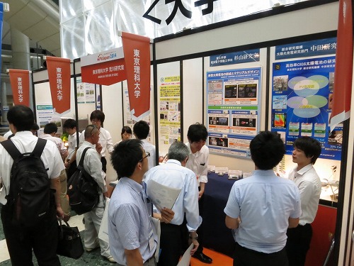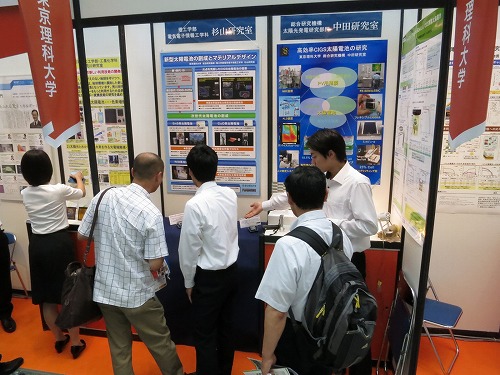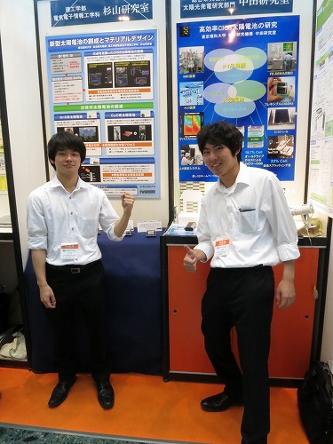 PV-Japan展示発表 東京ビックサイトで開催された太陽電池関係の展示会PV-Japanで、 杉山研が研究している太陽電池・システムに関する展示を行いました。 ![]() 前日は展示物のセッティング…。理科大は他に3名の先生が展示しました。 ![]() 理科大ブースはいつも人で一杯でした…。 ![]() 発表は4年生が日替わりで行いました。慣れない発表に緊張…。