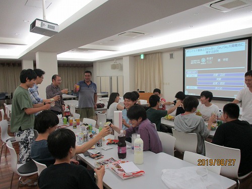 夕飯を食べたあともゼミをして、 ![]() 全員発表が終わったら、飲み会をしました…。