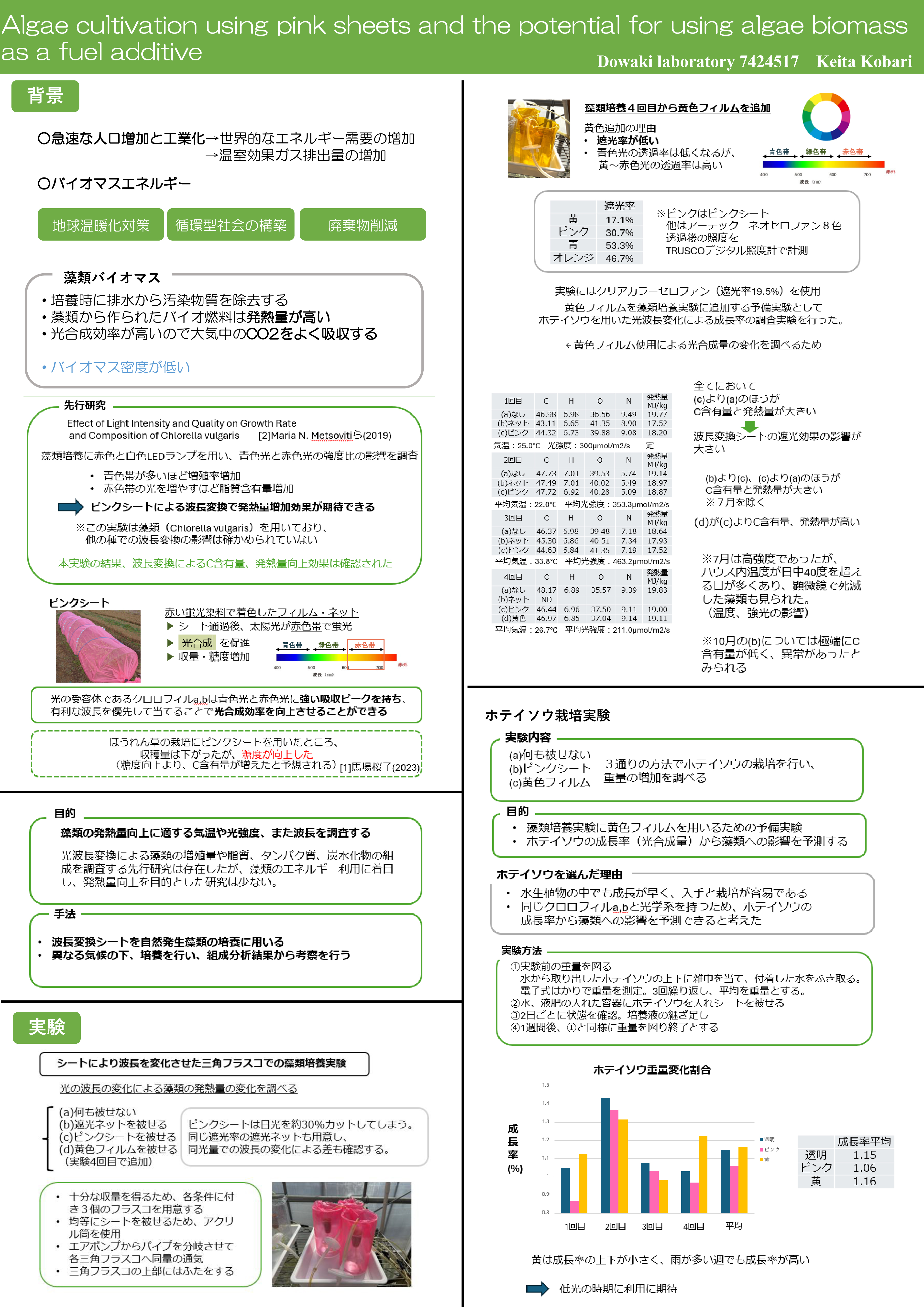 タイトル:Algae cultivation using pink sheets and the potential for using algae biomass as a fuel additive